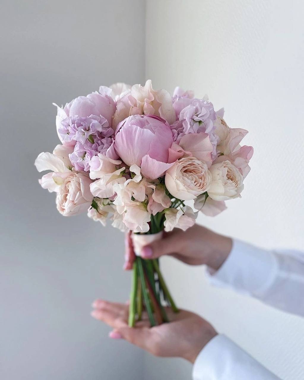 Пионовидная Роза, альстромерия матиола